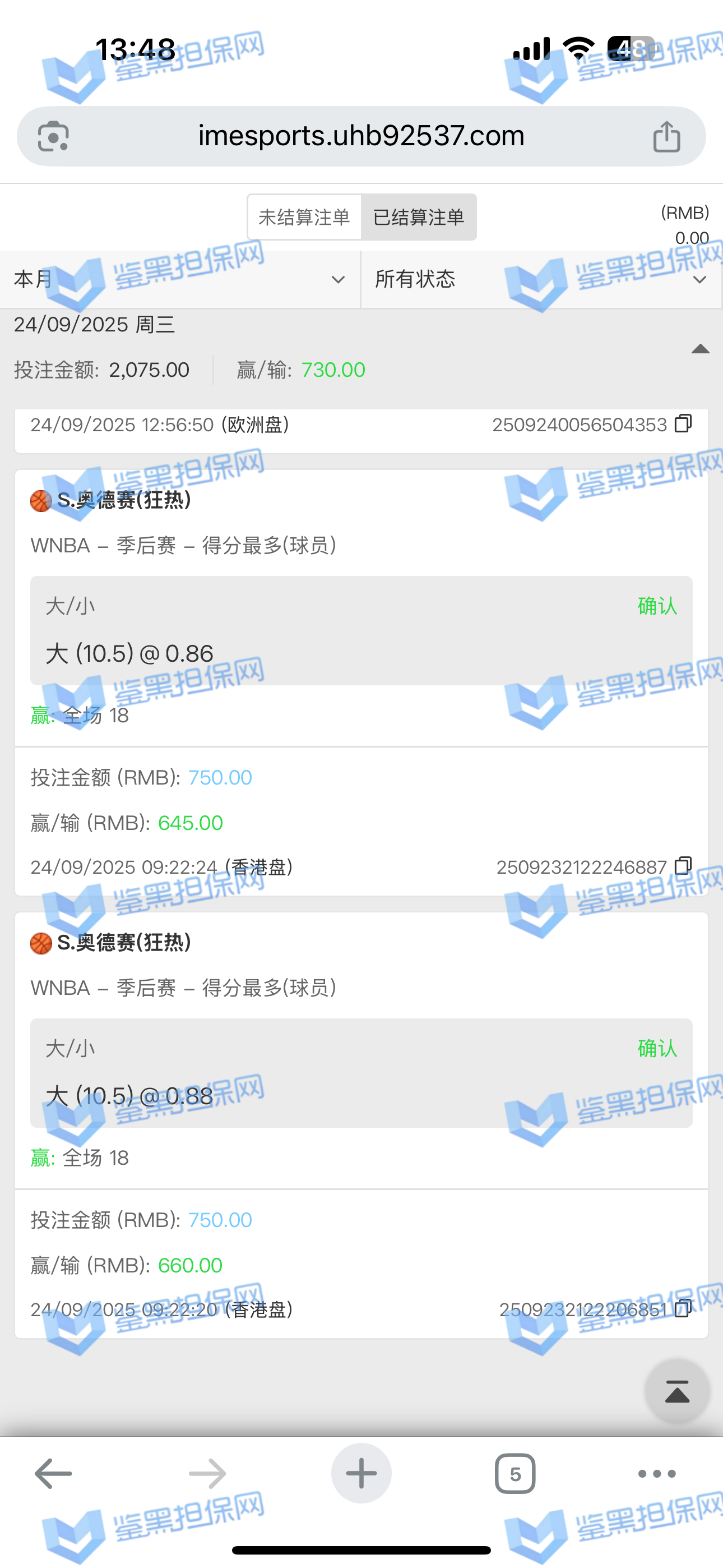 充值5000提款3200被客服告知im注单异常 玩了两天就赢了这一场比赛 是初盘球员得分 还不是滚球 告诉我注单异常 一共im就赢了这一场 几个小时不出款 再问就是无限期审核