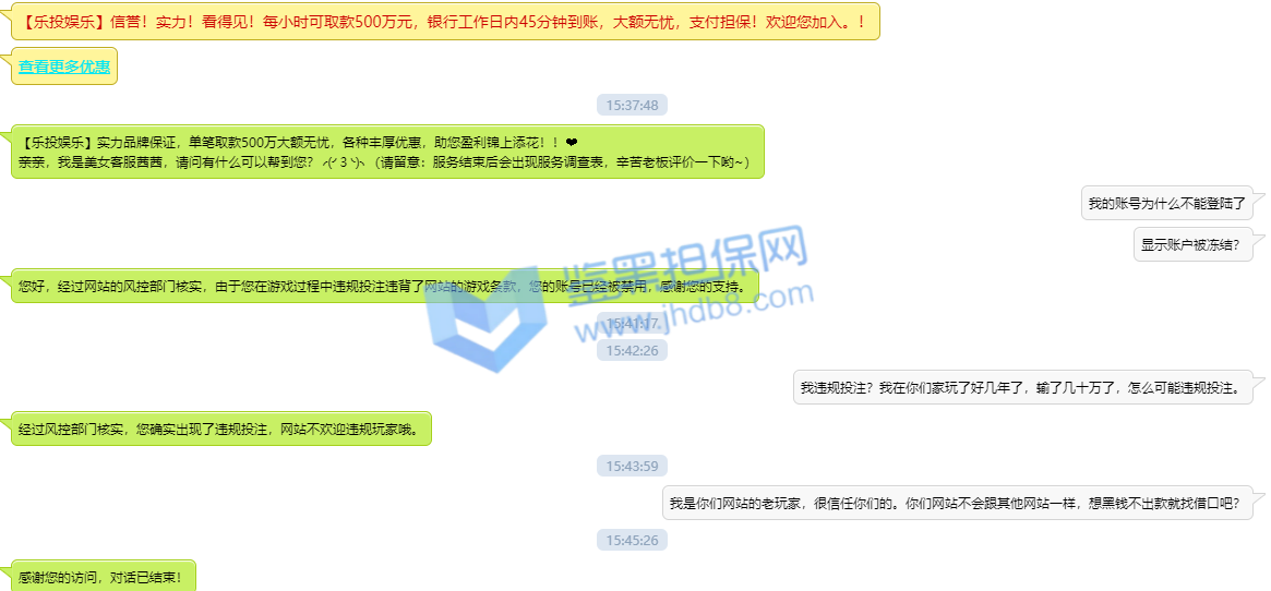 前几天在大发bet入款2000。没有申请任何优惠情况下下了几场比赛。流水妥妥的满足要求。昨晚申请取款的时候。三次被拒绝。询问之下,大发工作人员嚣张的回复了一句。你申请了首存百分50活动。我当时就呵呵了,就你这优惠15倍流水谁有这福气享受了!大发居然回复,这是你满足优惠情况下,系统自动申请的。我也是服了,你们听说过自己不申请优惠的情况下,系统自动给你申请,强制你们优惠吗。大发给的回复是我自己注册的时候自己默认优惠由系统自动派发。我玩这么久的体育就没听说过还有这样的,你们大发真是心灵手巧啊。客服当时就回复了一句你发现钱多的时候不会自己找客服吗,反正你都盈利了,多赢点有什么关系。你们说说看,这是一个大牌公司应该有的态度?然后我就问在哪里可以看到红利派彩,客户就会员看不到,他们说有就有!我耐着性子去算了一遍自己的下注流水,发现2000的本金下注的比赛输赢情况正好符合我现在账号余额,没有多余的钱于是我找客服理论。他也发现自己算错了就说了一句核查错误我再申请取款。然而第二次还是失败的!于是我在大发体育的本金就赚到沙巴体育去申请取款。还是取款失败!我再次找客服理论,大发只回复了一句我从大发体育转到沙巴体育。跨平台转账需要多1倍流水,就是还要4325的流水。我当时就懵逼了。你们公司自己的平台为什么我转账之后还要多完成一倍流水!客服就呵呵了我,说了句公司规定。公司规定,这口气就跟那些黑平台不给出款说的专员审核还有风险控管部门核实不是一个态度吗?然而大发,一个在业界享有声誉的公司,客服居然是这个态度。我就问他你们平台注册还有下注条例哪里有写明这些。客服的回答让人咂舌,他说只要公司规定就可以。退一万步说你们这规定是合理的,公司要求的。也应该写明了规则,会员需要有知情权,你们这样的说法一开始就建立在不诚信的基础上。说到这里希望吧里有在大发bet下注的朋友告知一声,是否大发自己公司内的下注平台资金转账需要多刷一倍流水!还是说我受到不公平要求!因为他们的强制要求,一开始大发在客户不知情也没有申请的情况下自动添加彩金,并且无任何详细规定写明平台转账需要多完成一倍流水,强制完成莫名其妙流水。从头到位大发bet态度就是嚣张!最后希望鉴黑担保网把这个黑网曝光,不要让更多老哥上当受骗!