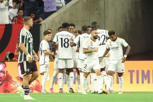 卢宁/卡瓦哈尔、吕迪格、琼阿梅尼、弗兰-加西亚/巴尔韦德、克罗斯、莫德里奇/贝林厄姆/罗德里戈、韦尼修斯