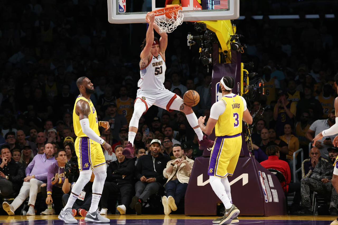 距离冠军只有一步之遥的掘金回到主场,但他们很快遇到了麻烦:戈登和约基奇在第一节很快受到犯规麻烦,掘金全队在三分线外手感遇冷,但靠着防守他们以及死死咬住比分。