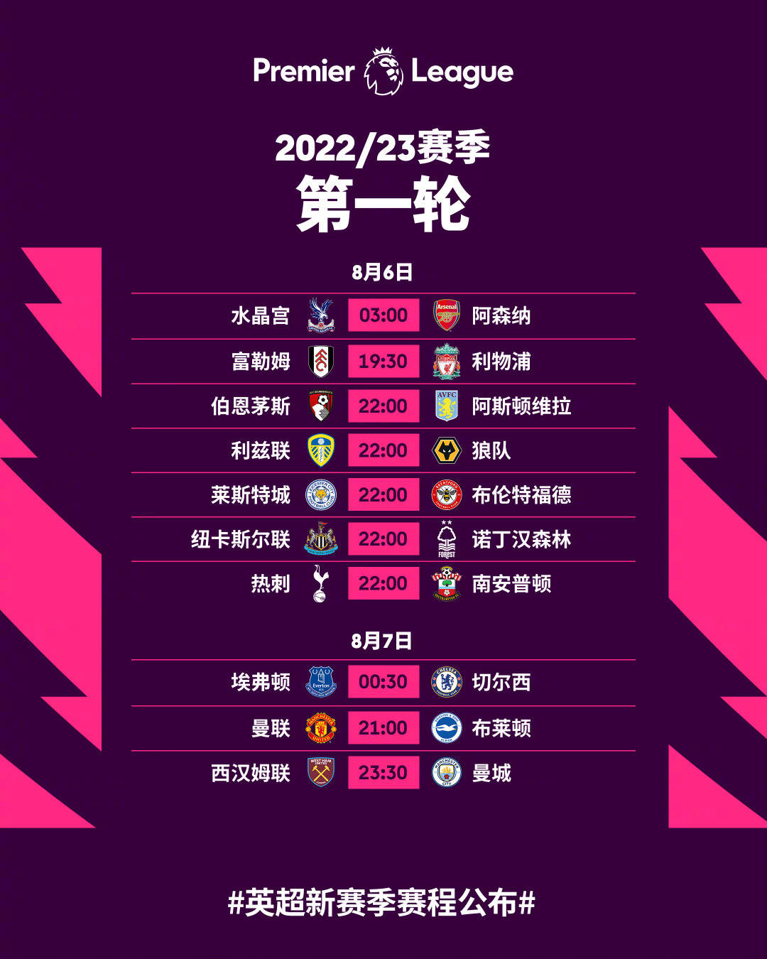 体育专区 英超新赛季赛程